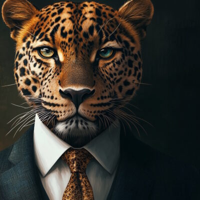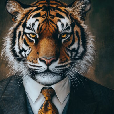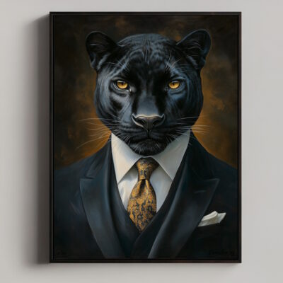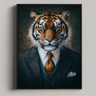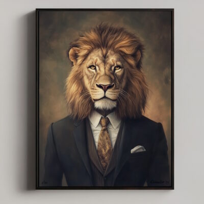 Een collectie die de essentie van macht en verfijning vangt. Elk werk toont een close-up van een imposant dier in een strak zakelijk pak, met intense blik en oog voor detail. De werken brengen de kracht van de natuur samen met de wereld van succes en ambitie. Perfect voor een statement aan de muur dat kracht, leiderschap en stijl ademt.
