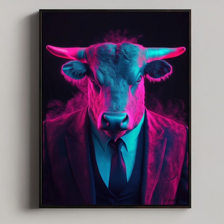 Bull – Neon Instincts straalt brute kracht en vastberadenheid uit, met neon-accenten die zijn energie en dynamiek versterken. Ideaal voor een krachtige, inspirerende omgeving.