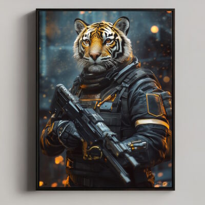 Wat als dieren zichzelf konden beschermen tegen de bedreigingen van de mens? Elephant Armor – Fierce Defenders stelt deze vraag op een krachtige en indringende manier. Dit indrukwekkende kunstwerk toont een majestueuze olifant, gehuld in een robuust pantser en uitgerust met een imposant wapen, als symbool van zelfverdediging en overleving.
