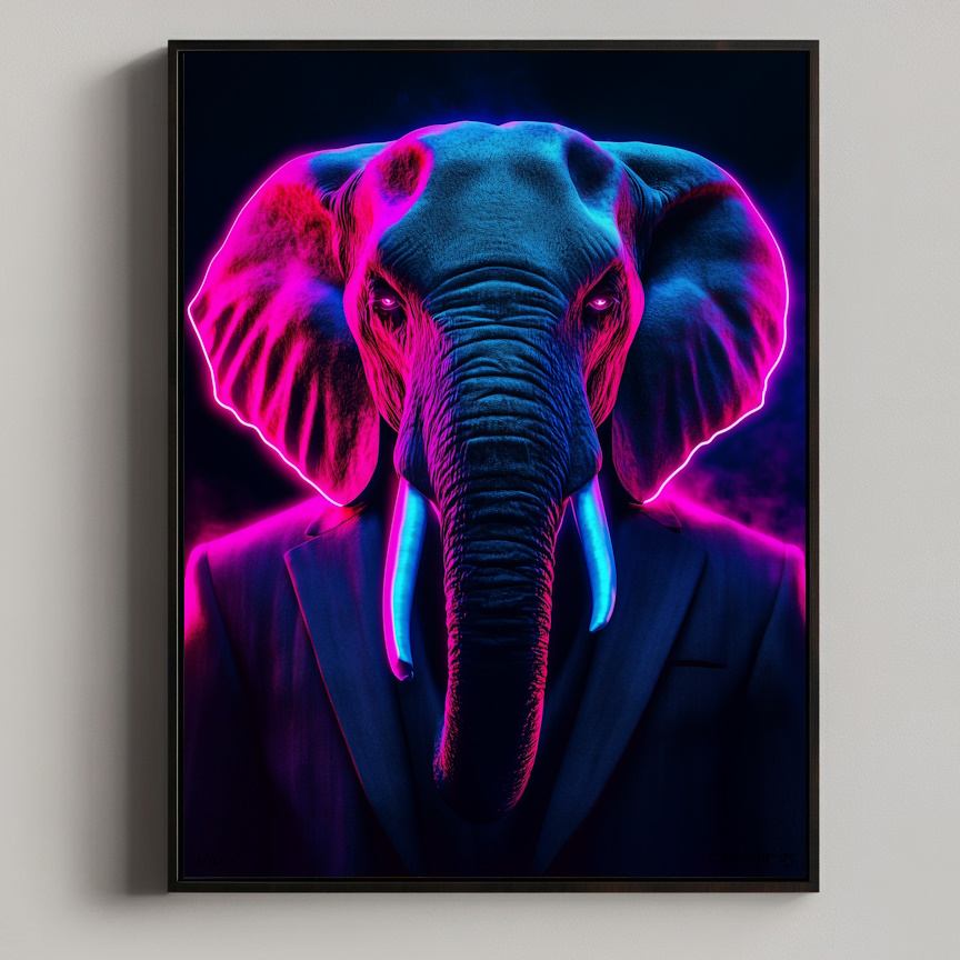 Elephant – Neon Instincts combineert wijsheid en kracht met een opvallende neon-aura. Een kunstwerk dat zowel rust als een krachtige aanwezigheid uitstraalt.