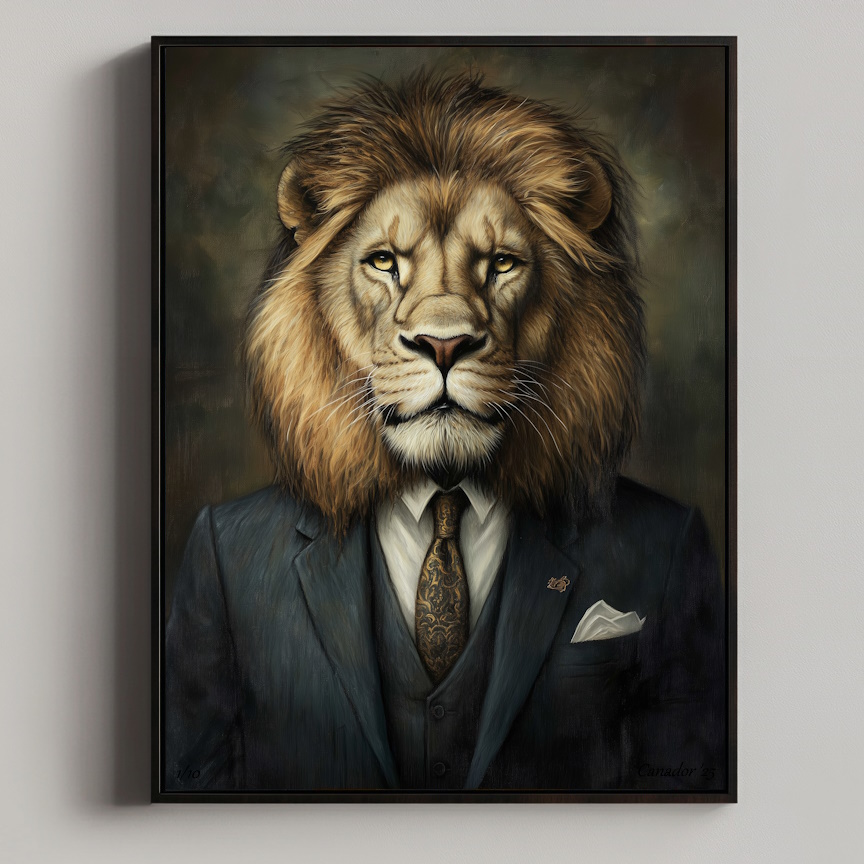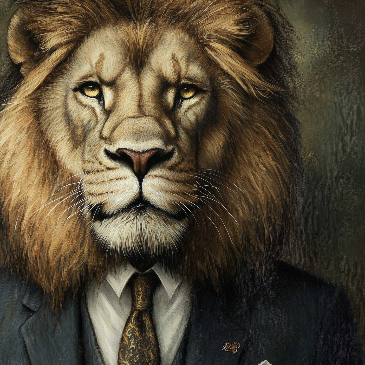 Lion King – Corporate Creatures is een krachtig statement van leiderschap en visie. De koninklijke leeuw in een verfijnd pak symboliseert ambitie en autoriteit.