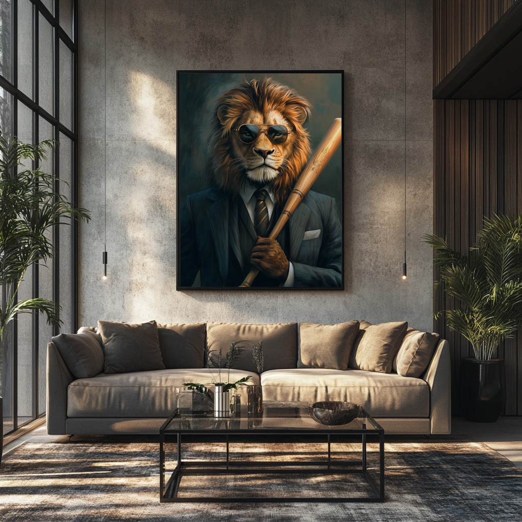 Lion King – Power Players is een iconisch kunstwerk dat kracht en koninklijke pracht samenbrengt. De leeuw wordt afgebeeld met een onweerstaanbare majestueuze houding.