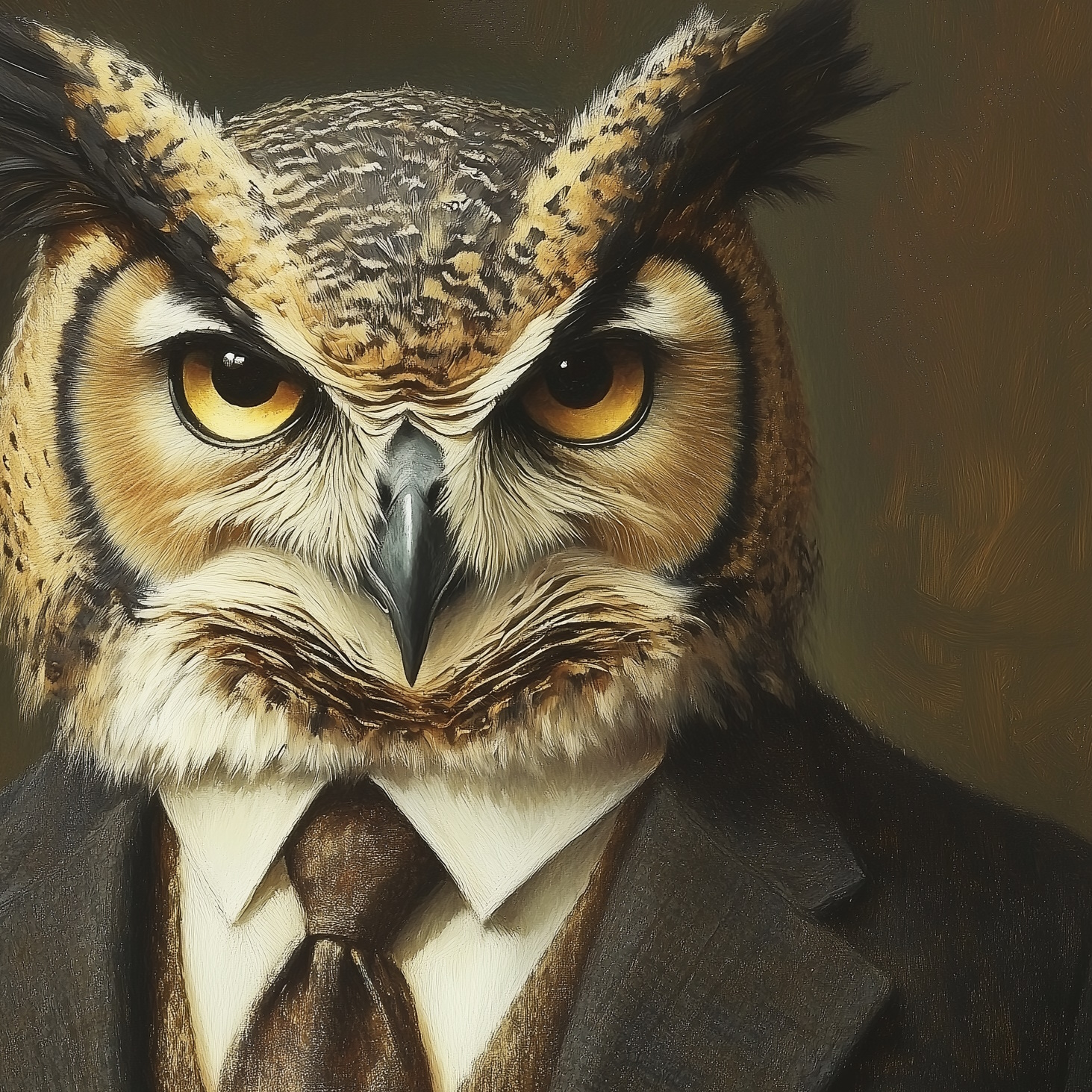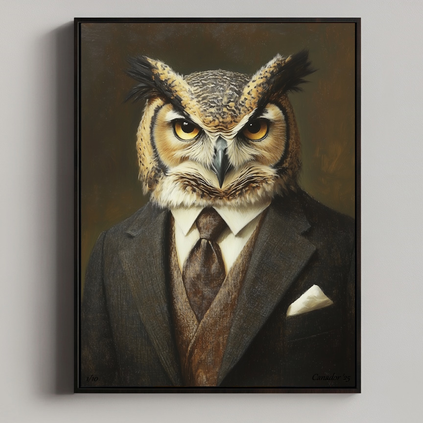 Owl – Corporate Creatures straalt intelligentie en rust uit. De wijze uil in een stijlvol zakelijk pak symboliseert inzicht en visie.