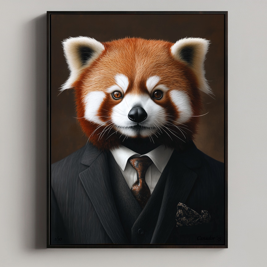 Red Panda – Corporate Creatures combineert schattigheid met verfijning. De rode panda in een elegant pak brengt zachtheid en professionaliteit samen.