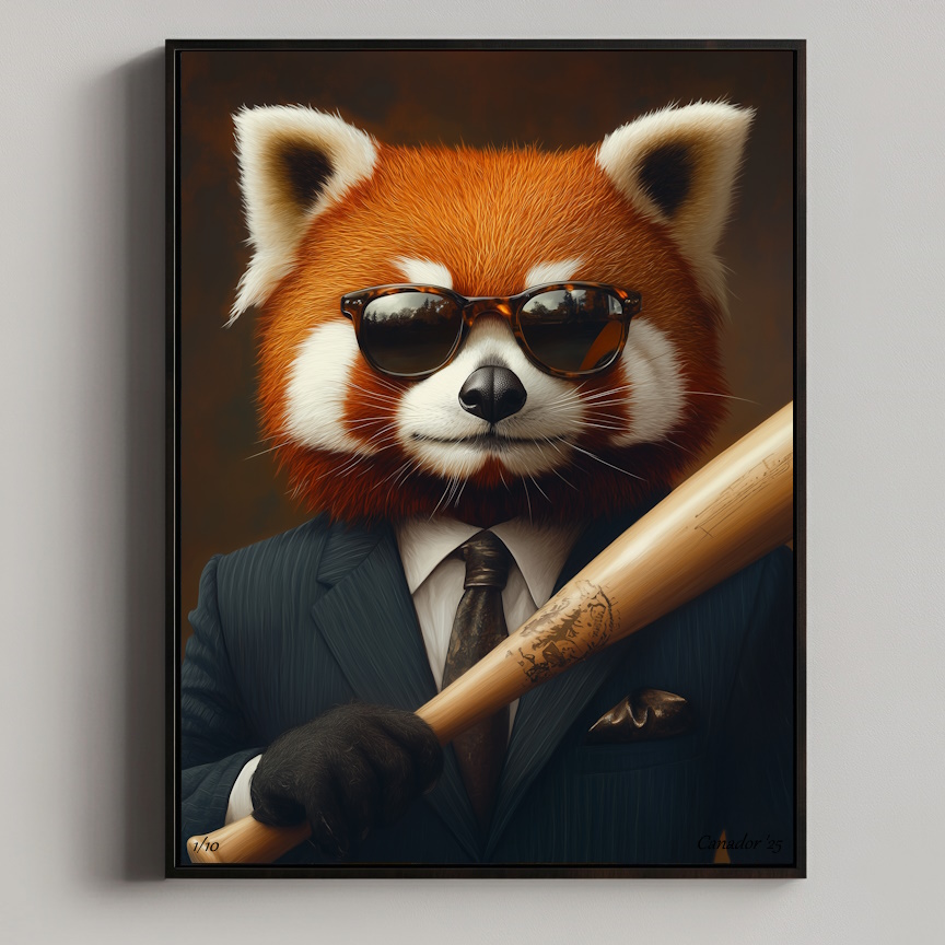 De subtiele details van de rode panda, gecombineerd met zijn expressieve houding, maken dit kunstwerk tot een krachtige eyecatcher. Een unieke mix van schattigheid en ambitie in een indrukwekkend portret.