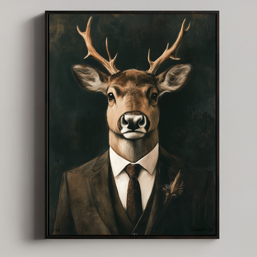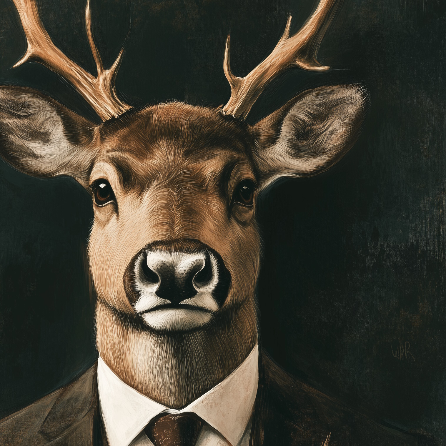 Elegant en krachtig: Reindeer – Corporate Creatures toont een rendier in een op maat gemaakt pak. Een kunstwerk dat gratie en succes viert.