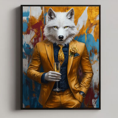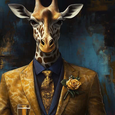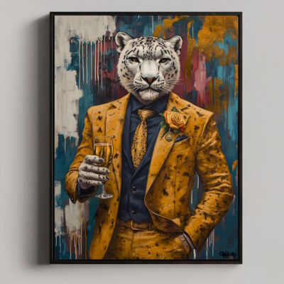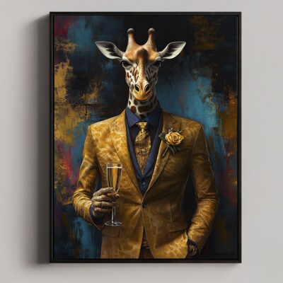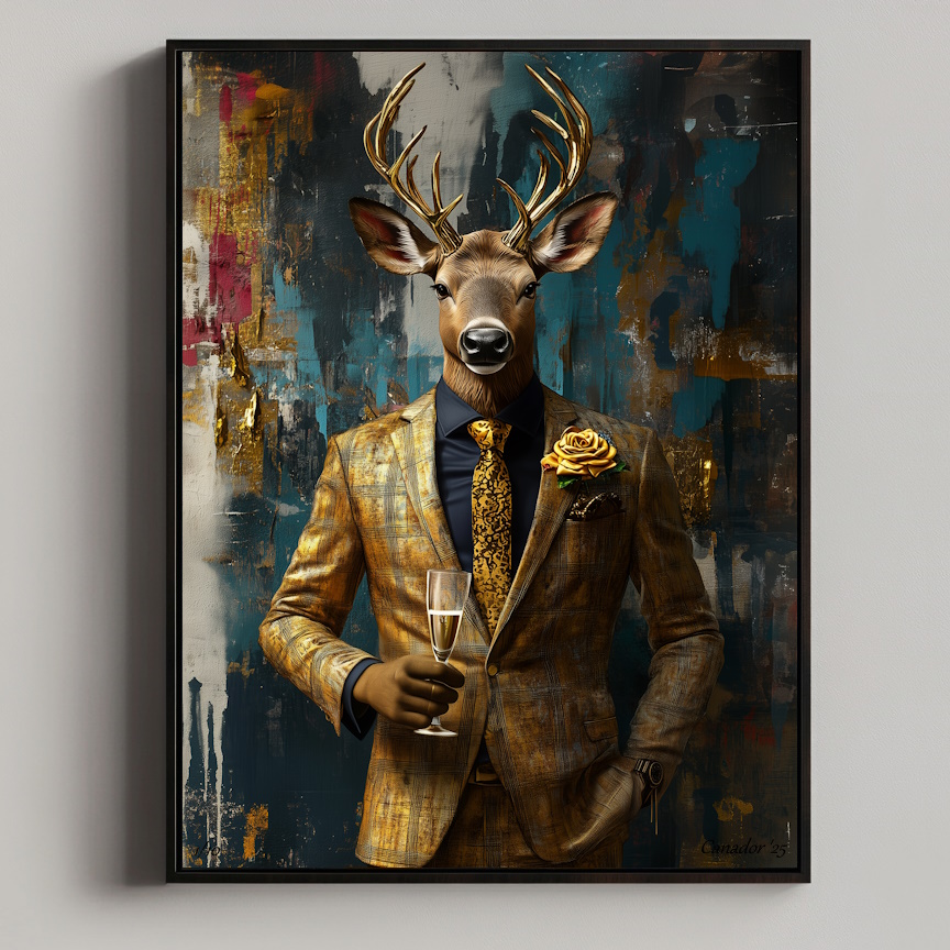 Breng elegantie en kracht in jouw ruimte met Reindeer – Toast to Triumph, een kunstwerk dat gratie, doorzettingsvermogen en succes viert. Het majestueuze rendier, gekleed in een op maat gemaakt pak en met een glas in een trotse toast, symboliseert de perfecte balans tussen stijl en kracht.