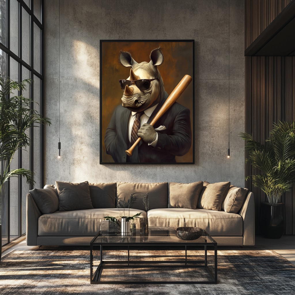 Rhino – Power Players straalt ruwe kracht en vastberadenheid uit. De imposante neushoorn brengt een energie van stabiliteit en onverzettelijkheid in elke ruimte.