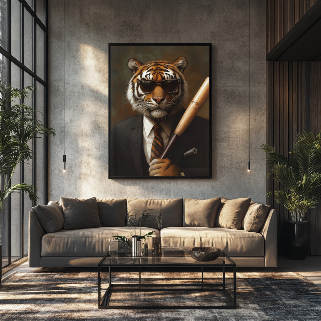Tiger – Power Players toont de tijger in al zijn ongetemde kracht. Met een scherpe blik en gedetailleerde lijnen straalt dit kunstwerk moed en vastberadenheid uit.